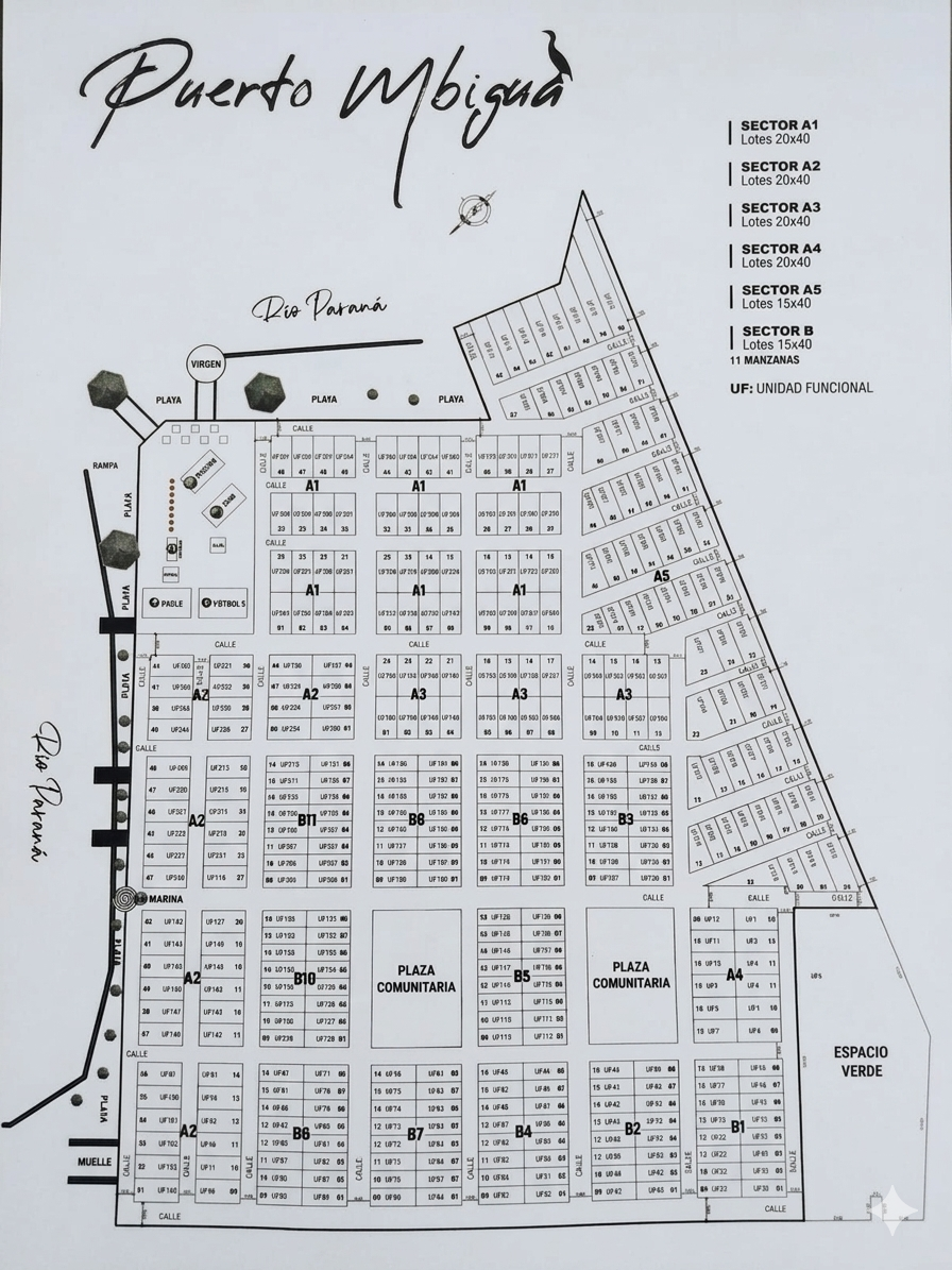 El desarrollo cuenta con lotes en venta de 20 x 40 m y 15 x 40 m, pensados para adaptarse a diferentes necesidades y proyectos, en un entorno natural privilegiado con acceso directo al majestuoso río Paraná.