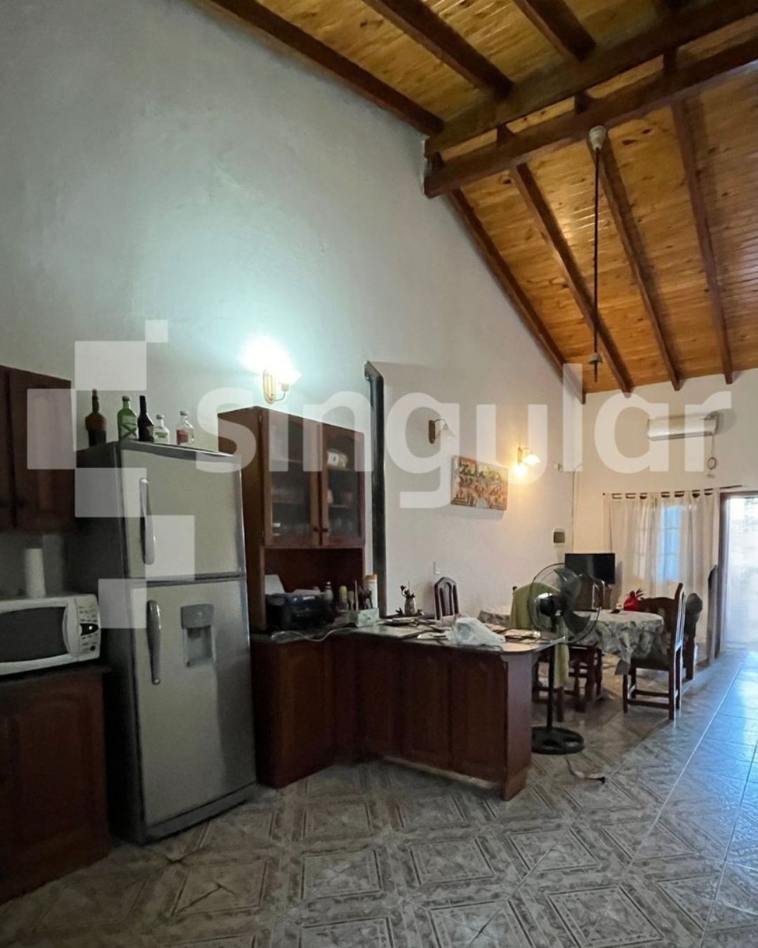 La casa posee: dos habitaciones, un baño completo, un living comedor con una cocina integrada, un quincho con parrilla y espacio para dos autos.