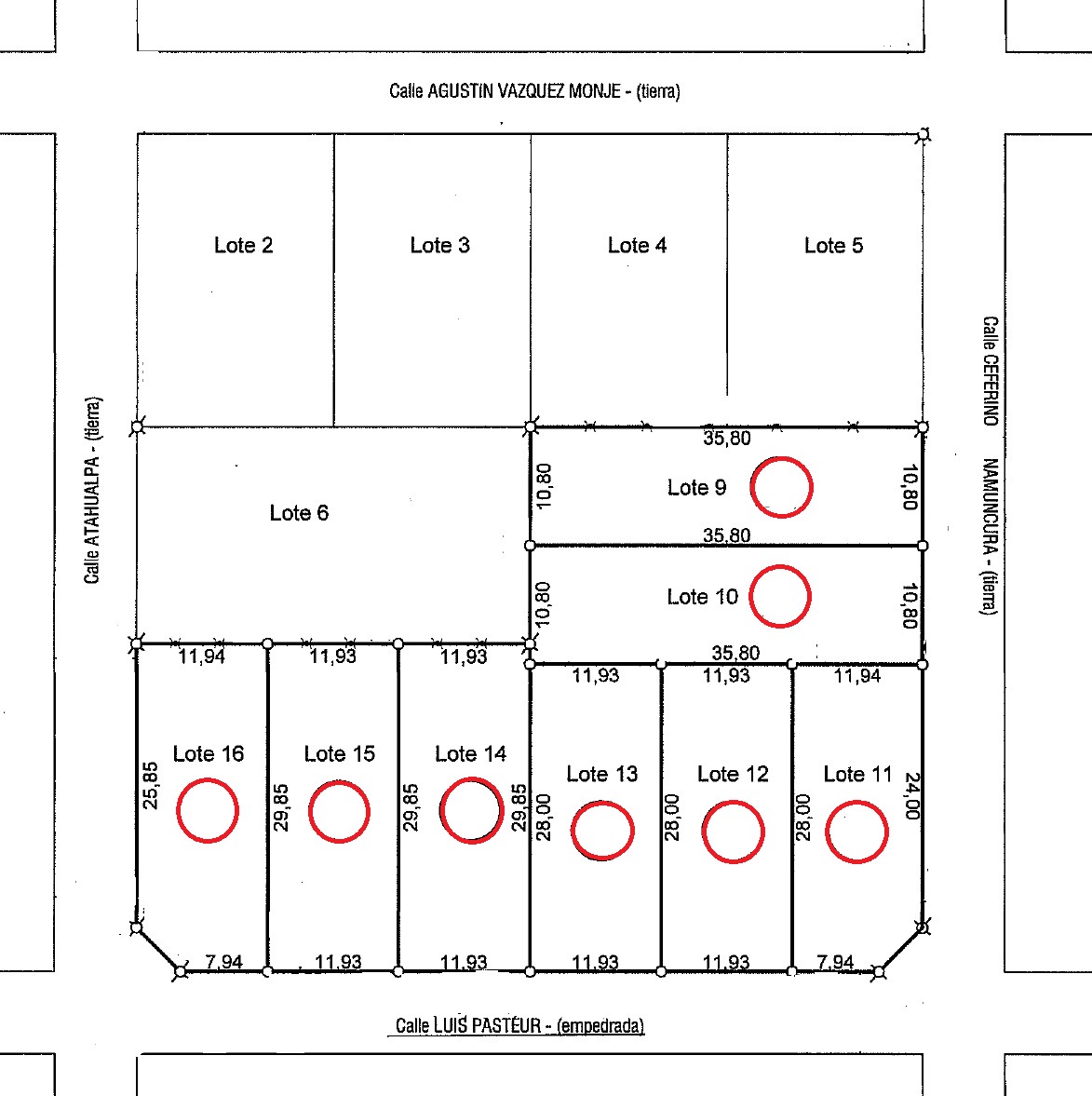 Lotes desde 326 m² a 386 m²